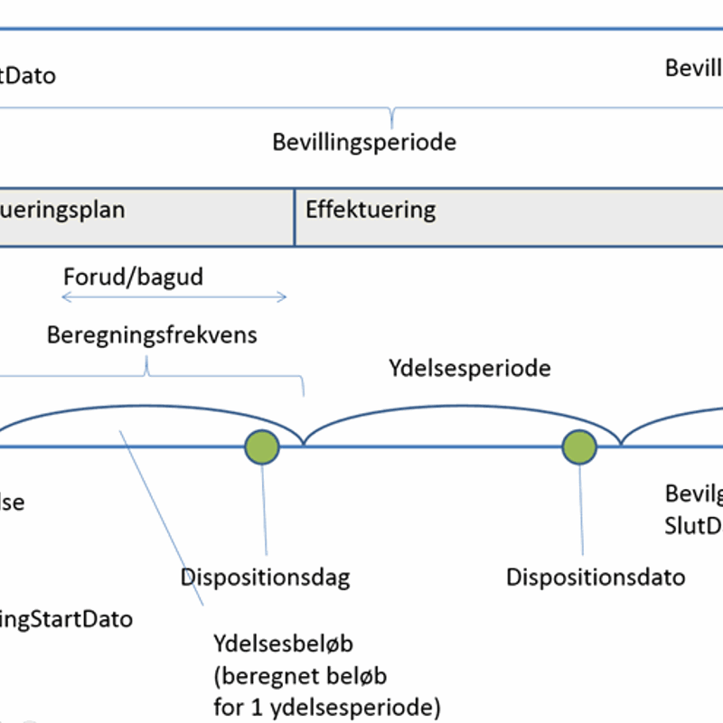 Ydelse – Hvilken ydelse er bevilget. Hver bevilget ydelse peger på netop en, men flere kan bevilges inden for samme bevilling