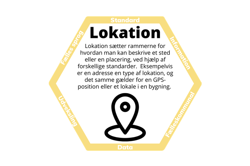 Byggeblokken Lokation udgør et fælles sprog og forståelsesramme ift. at kunne arbejde med stedbestemmelse af en lokation (sted, område, strækning mfl.). Byggeblokken udpeger en række forskellige datastandarder som kan anvendes til at beskrive, strukturere og dokumentere informationsindhold om en lokation. De forskellige datastandarder, afspejler hver især forskellige måder og metoder til at stedbestemme en lokation og informationsindholdet om denne.