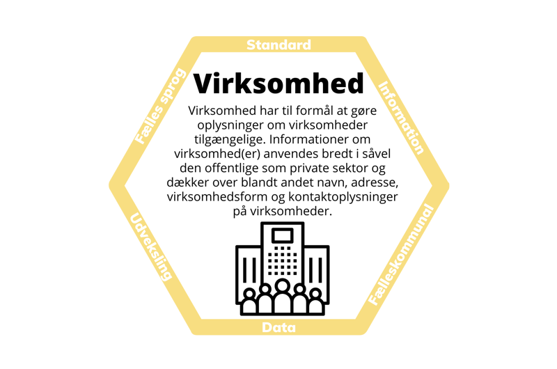 Byggeblokken tager afsæt i Danmarks grunddataprogram. Scope for byggeblokken afspejler derfor grunddataprogrammets definitioner og formål der har afsæt i gældende lov for det pågældende område. Virksomhed har til formål at gøre oplysninger om virksomheder tilgængelige. Virksomhed holder informationer om enheder, der uanset retlig form udøver en økonomisk aktivitet, og er eller har været registreret med i CVR registreret, herunder juridiske enheder og P-enheder. Informationer om virksomhed(er) anvendes bredt i såvel den offentlige som private sektor og dækker over blandt andet navn, adresse, virksomhedsform og kontaktoplysninger på virksomheder.