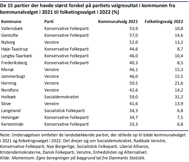 En analyse af det seneste kommunal- og folketingsvalg, som Momentum har beregnet på baggrund af tal fra Danmarks Statistik, viser nemlig, at nogle partier oplever store udsving i andelen af stemmer.
