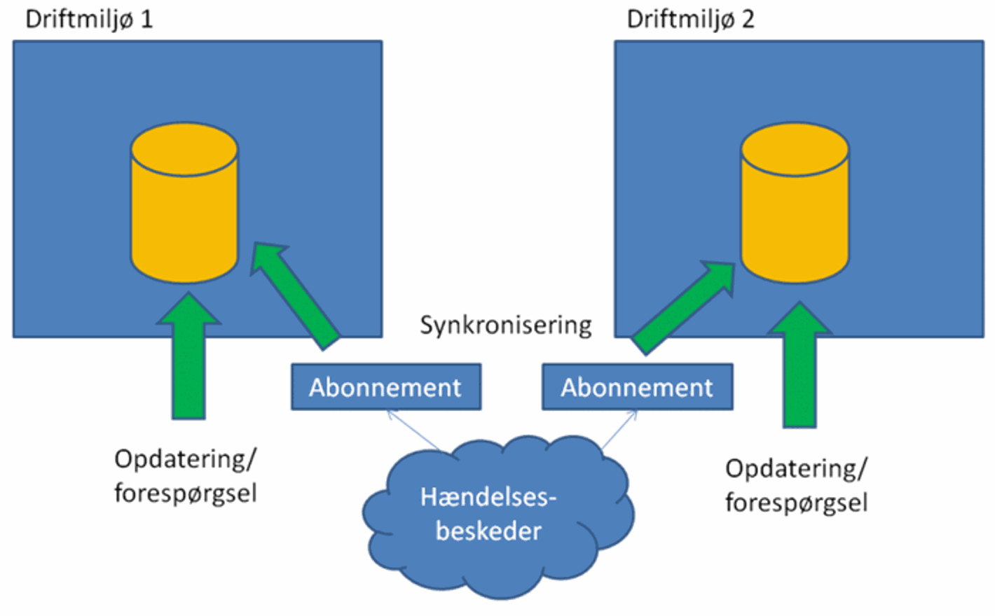 For at distribution fungerer, skal der skabes en synkroniseringsmekanisme mellem de forskellige implementeringer af samme objekt. Umiddelbart skulle man tro, at de forskellige forekomster af samme objekt skal kende hinanden godt og at der skal solide aftaler og snitflader til, for at de kan opdatere hinanden, men det er ikke tilfældet. I en løst koblet arkitektur er det vores ønske, at de IKKE nødvendigvis skal kende hinanden.