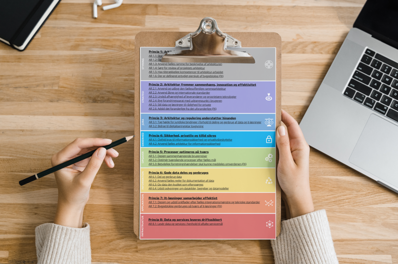 Arkitekturprincipperne har som formål at understøtte og kommunikere den valgte retning i den fælleskommunale arkitekturstyring.